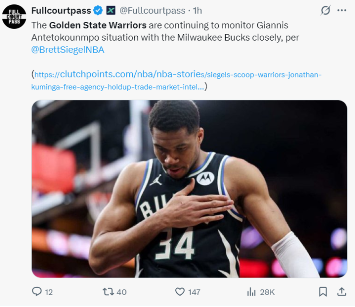 不过勇士队也一直在关注扬尼斯的动向,因为扬尼斯对雄鹿管理层今夏放走大洛裁掉利拉德不满,如果扬尼斯申请交易勇士队会去追求。