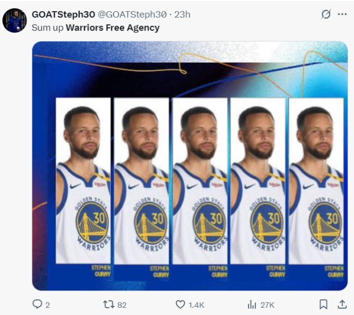 库里的球迷调侃:勇士休赛期的运作就是库里、库里。